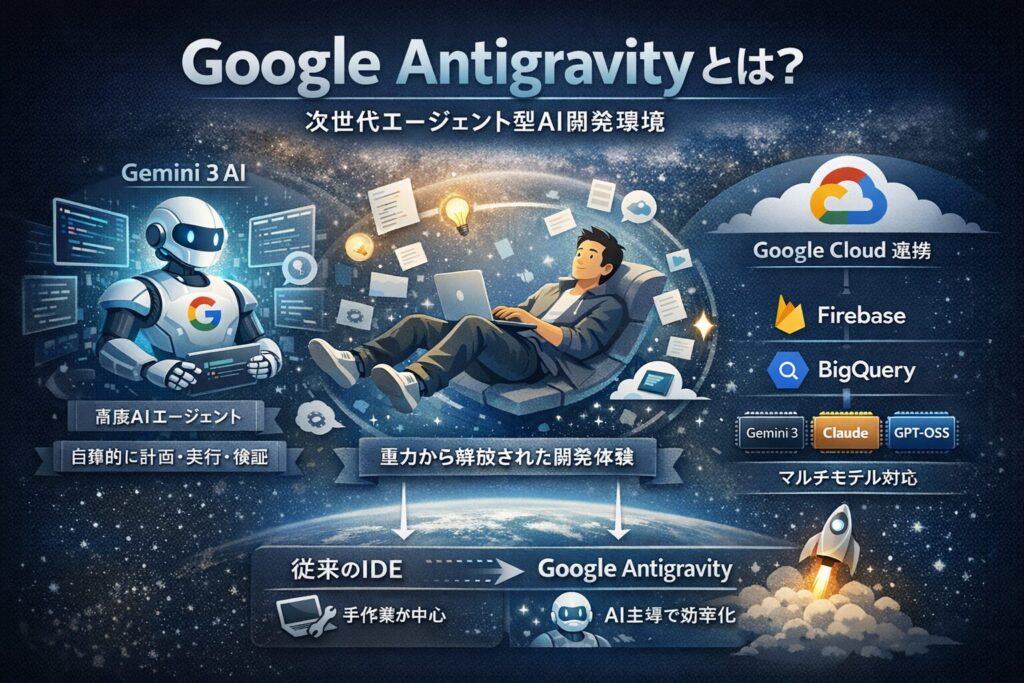 結論からお伝えすると、Google Antigravityとは、GoogleがGemini 3を中核エンジンとして開発した次世代のエージェント型AI統合開発環境(AIエディタ)です。 単なるコード補完ツールではなく、AIエージェントが自律的にタスクを計画・実行・検証できる「エ... Windows