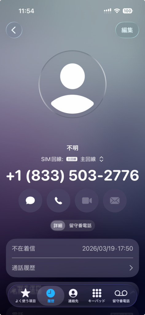 したがって、1833からの着信は「北米地域で取得されたフリーダイヤル番号からの電話」であると特定できます。通常、フリーダイヤルは企業のカスタマーサポートなどが顧客からの問い合わせを受けるために設置するものですが、それが見知らぬ個人の携帯電話にかかってくるという状況自体が、極めて不自然で異常な事態なのです。