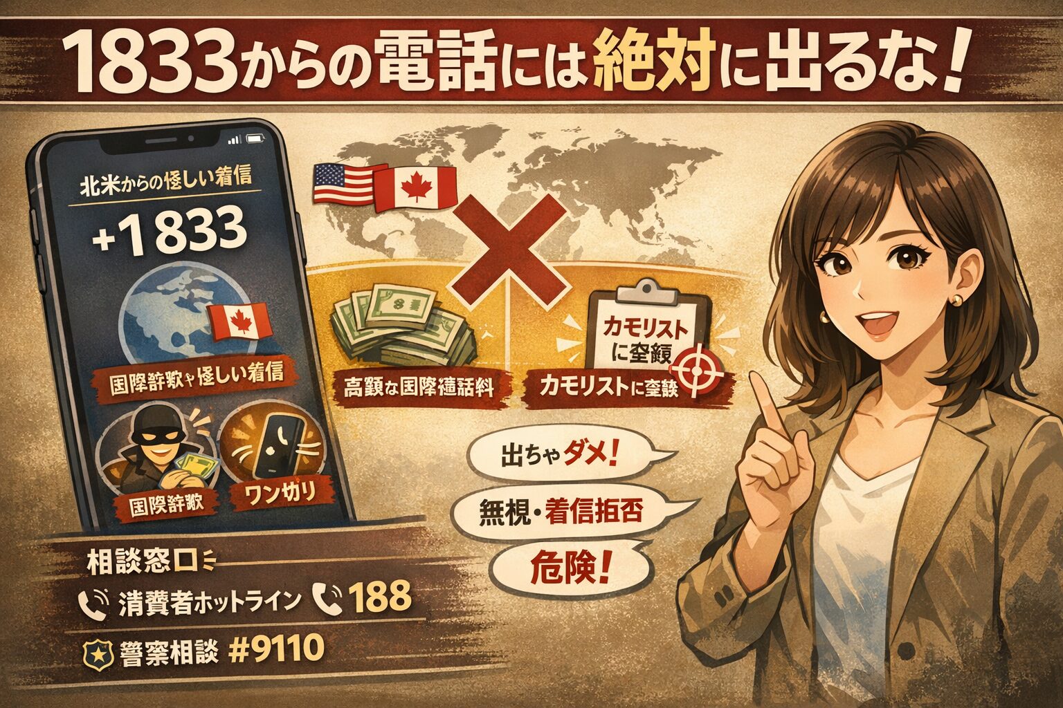 また、この手の詐欺は手口を変え番号を変え、常に新しいターゲットを探しています。ご自身の身を守るだけでなく、ご家族やご友人にも「最近、1833から始まる怪しい国際電話が流行っているらしいよ」と話題に出してみてください。周囲の防犯意識を高めることが、詐欺被害を未然に防ぐ最も有効な手段となります。
