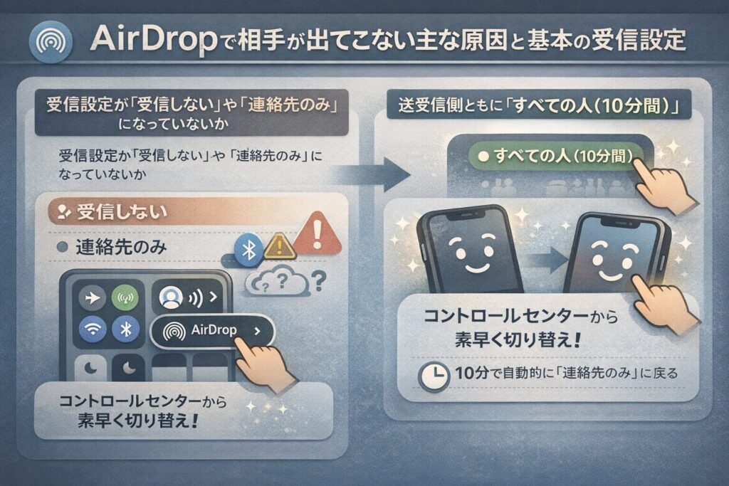 AirDropで相手が出てこない主な原因と基本の受信設定
