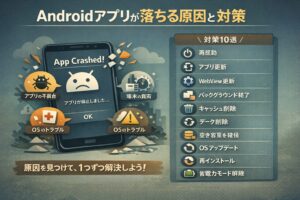 「アプリが頻繁に落ちる」「特定の画面でフリーズする」といったトラブルの多くは、キャッシュデータの破損が原因です。