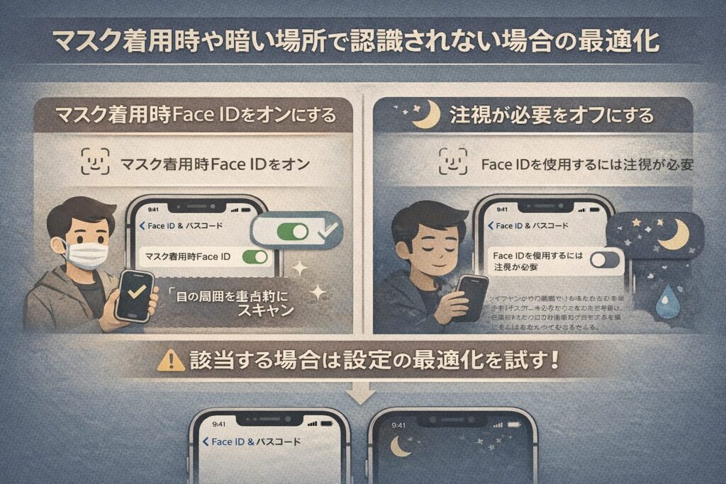 Face IDの利便性は、設定の追い込みによって大きく変わります。