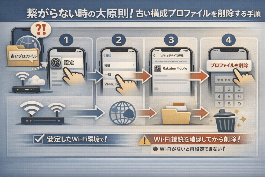 繋がらない時の大原則!古い構成プロファイルを削除する手順