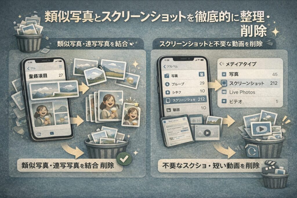 1. 類似写真とスクリーンショットを徹底的に整理・削除する