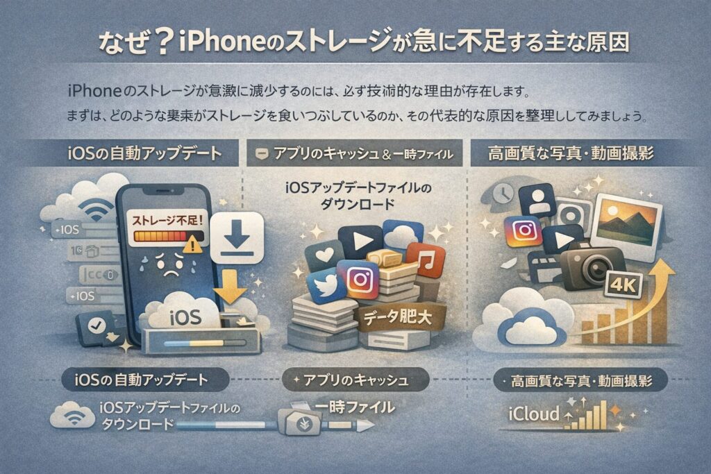 なぜ?iPhoneのストレージが急に不足する主な原因