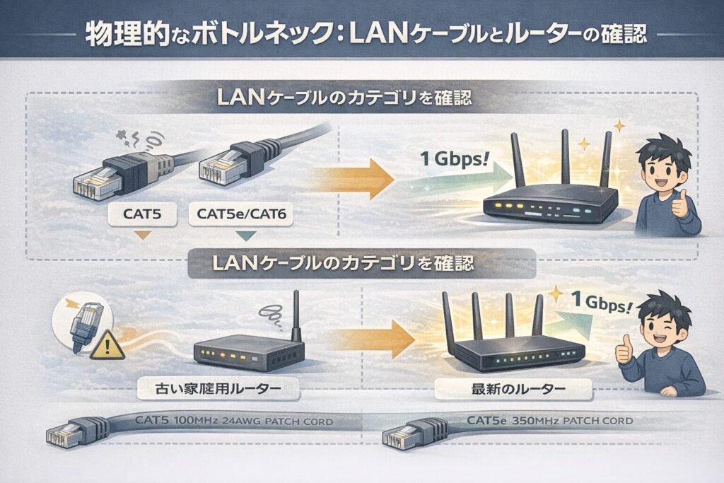 物理的なボトルネック:LANケーブルとルーターの確認