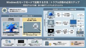 セーフモードとは、Windowsを最小限の機能だけで起動させる診断用のモードです。