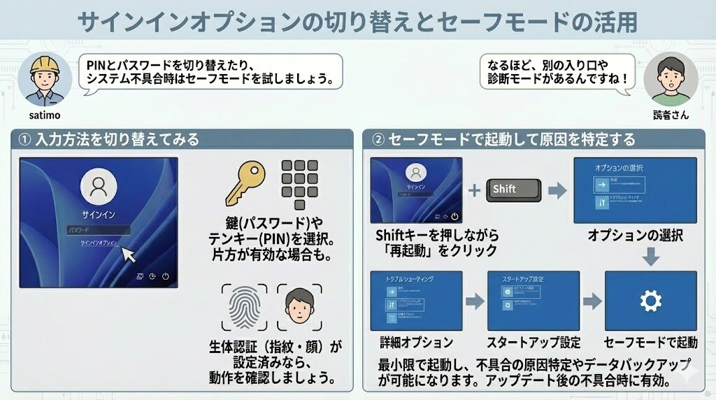 サインインオプションの切り替えとセーフモードの活用