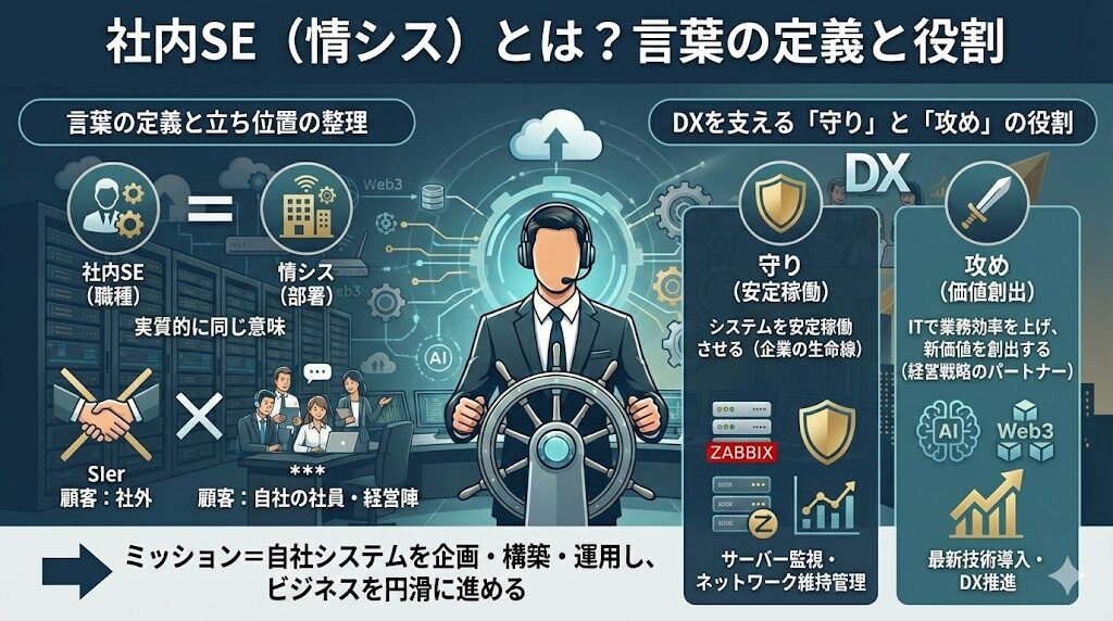 本記事では、社内SE(情シス)の定義や具体的な仕事内容、SIerとの決定的な違いについて、現役エンジニアの視点で「綺麗事抜き」に解説します。