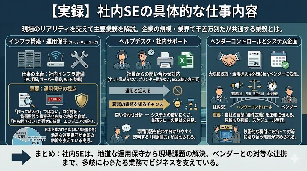 これから社内SEを目指す方や、エンジニアとしてのキャリアに悩んでいる方にとって、この「柱」となる記事が道標になれば幸いです。