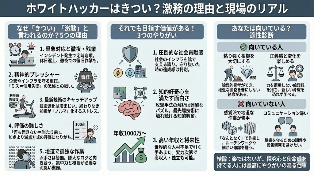 ホワイトハッカーはきつい?激務で辞めたいと言われる理由と現場のリアル