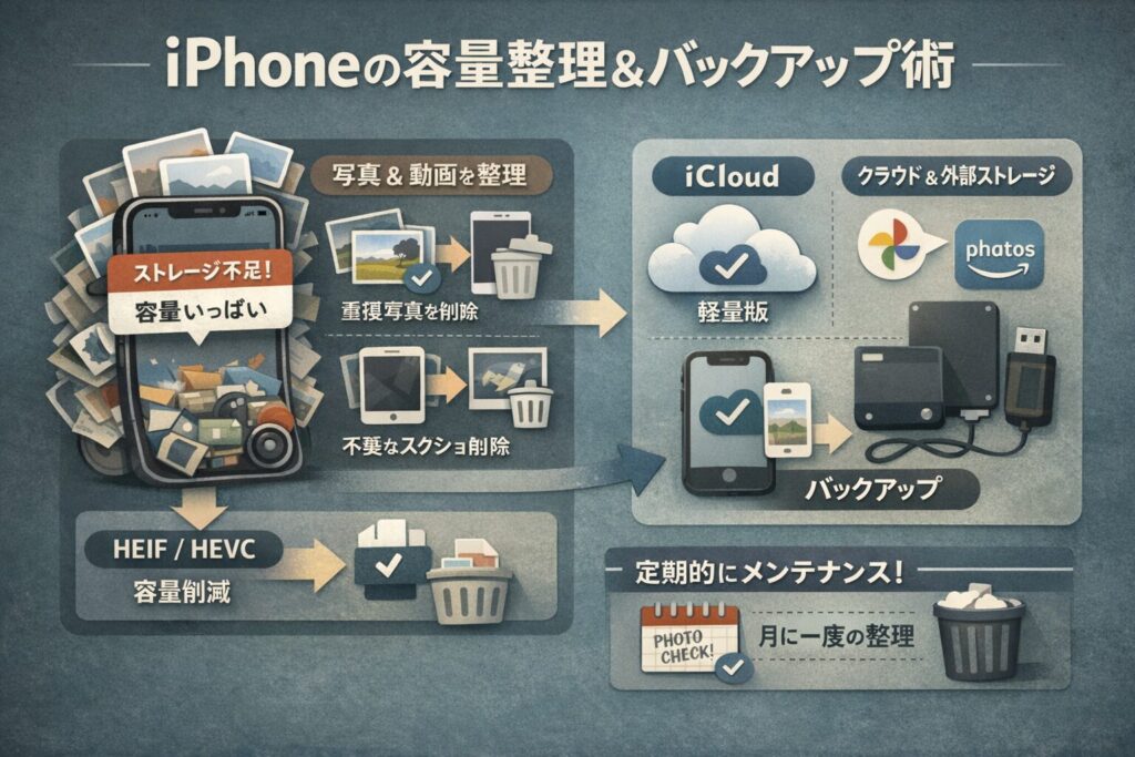 写真でパンパンのiPhoneを救う!容量を減らす5つの整理テクと失敗しないバックアップ術