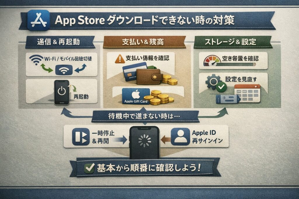 App Storeでアプリがダウンロード・更新できない時の解決策|支払い・残高・待機中のトラブルを完全解消
