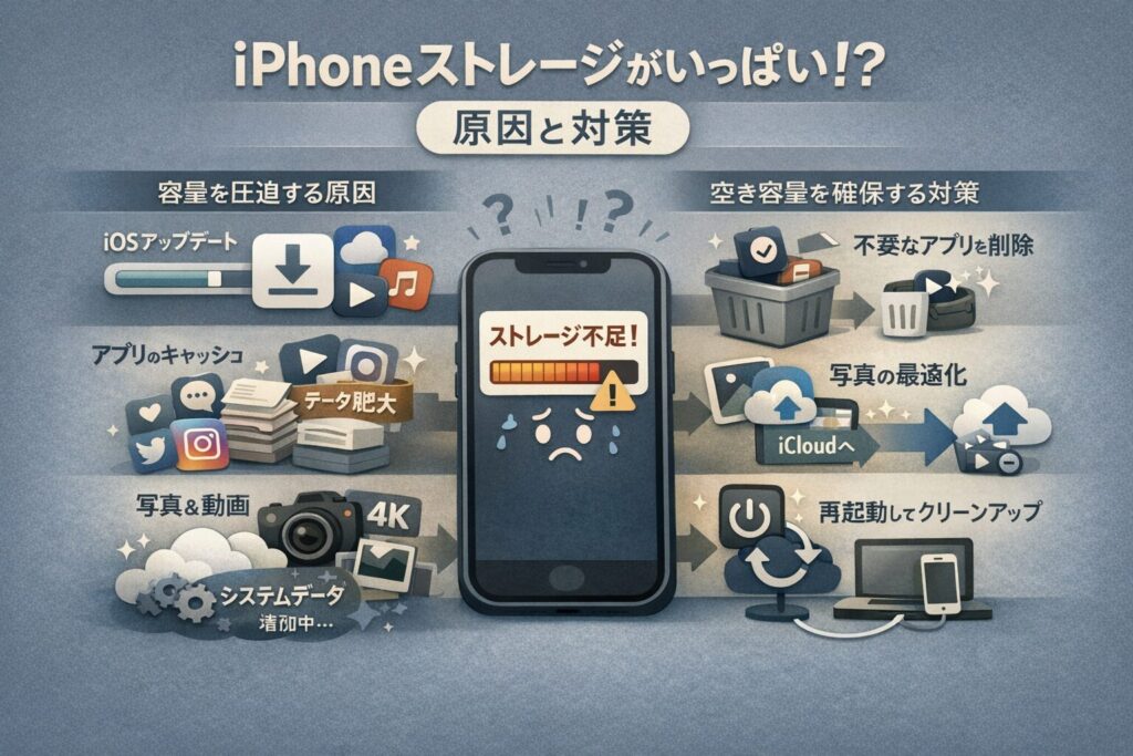 iPhoneを使っていて、「ストレージの空き領域がありません」という警告が急に表示されて驚いた経験はないでしょうか。 写真や動画をそれほど撮った記憶がないのに、なぜかストレージがいっぱいになり、動作が重くなったりアプリが起動しなくなったりするの... -
