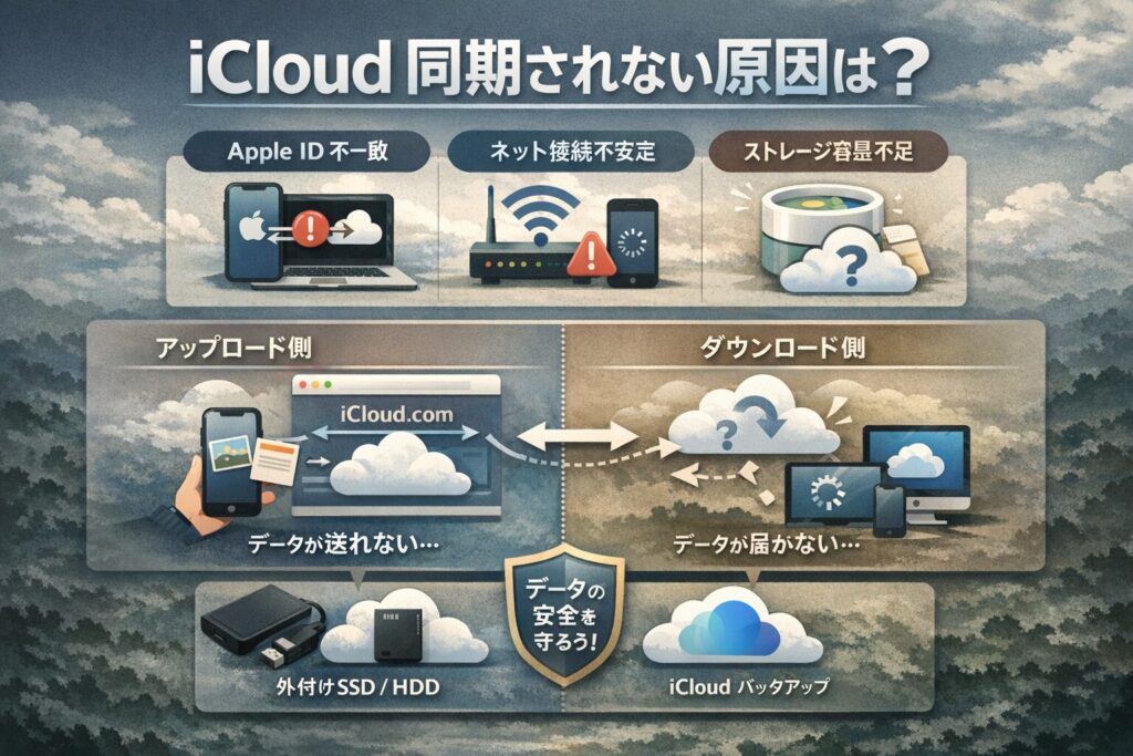 iPhoneやMacを使っていると、iCloudを通じたデバイス間の連携はもはや空気のように当たり前の存在です。 しかし、いざ「撮ったはずの写真がPCにない」「出先で更新したメモが反映されていない」といった同期トラブルが発生すると、業務やプライベートに大... -