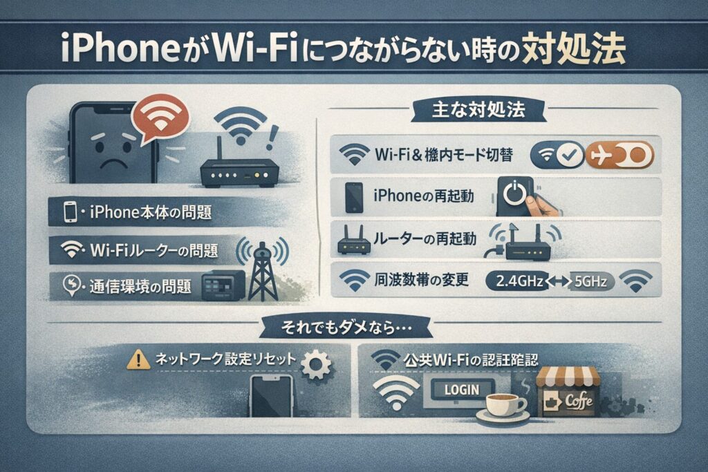 iPhoneを使っていて、突然Wi-Fiがつながらなくなると非常に困りますよね。 自宅で動画を見ている最中に接続が切れたり、公共のフリーWi-Fiにログインできなかったりと、ネットワークトラブルは日常のあらゆるところで発生します。 この記事では、現役のIT... -
