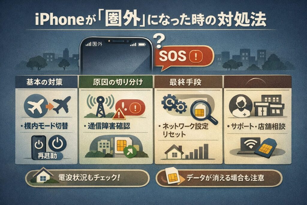 iPhoneが突然「圏外」になった時の対処法!モバイル通信を復活させる手順と原因の切り分け方